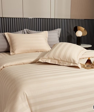 Комплект постельного белья, "Stripe mako satin collection", Кремовый